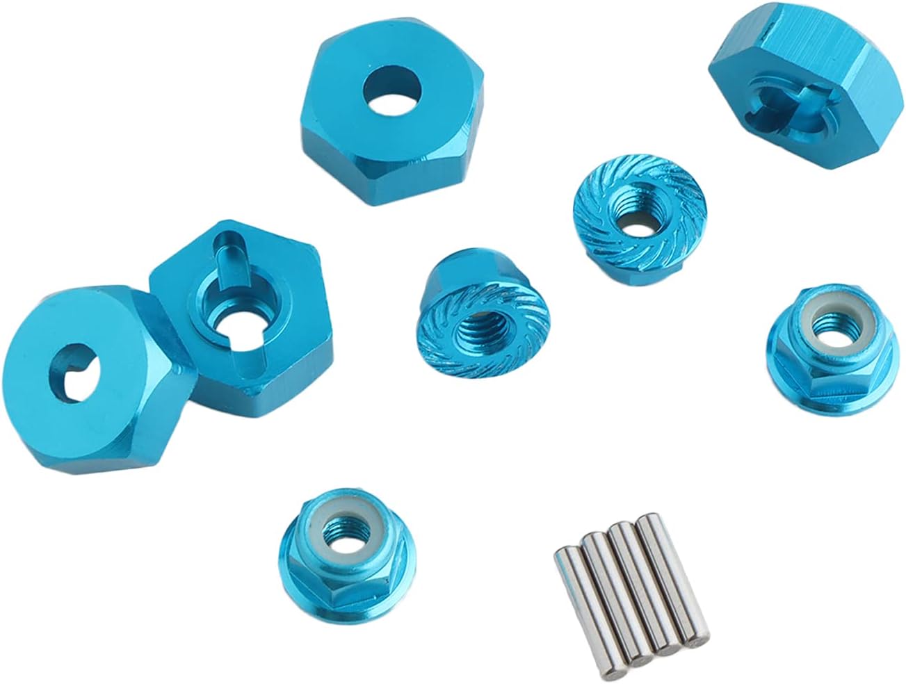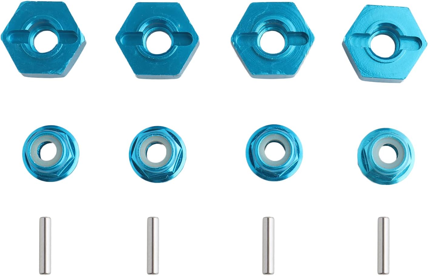 Feature: Brand new. Compatible with RC Hobby Model Cars. CNC precision machining. Easy upgrade from the original part. Made of high-quality aluminum alloy material, the surface is anodized, corrosion-resistant, prolonged service life and more durable. The nylon inserts of wheel lock nuts ensure your wheels stay connected to the vehicle under the harshest conditions. Specification: Item:Aluminum RC Wheel Hex Hub Drive Adapter Material: Aluminum alloy Hex Diameter: 12mm / 0.47'' Thickness: 5mm / 0.20'' Axle Hole Diameter: 4mm / 0.16'' Pins: 2x10mm / 0.08x0.39'' Color: Blue Item:Aluminum M4 Flanged Wheel Locknuts Thickness:5.5mm / 0.22'' Hole Diameter: 4mm / 0.16'' Outside Base Diameter: 9mm / 0.35'' Material: aluminum alloy; Nylon Color:Blue Package Includes: 4PCS Wheel Hex Hubs 4PCS Pins 4PCS M4 Lock Nuts